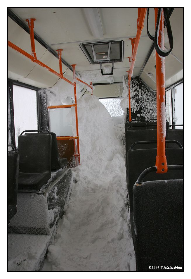 Where is the world’s most extreme public transportation service is located? We can easily assume that to be in Norilsk city, Russia. Norilsk people would boast “We have seen snowings in June; our parents are going to work in the column of the buses lead and followed by special snow clearing machines; our city was built by prisoners; when we hear that the weather is going to be warmer it would mean to be -10; and we don’t have any homeless wandering around - just none would survive at -54″. This photos were made in the buses of Norilsk city.
